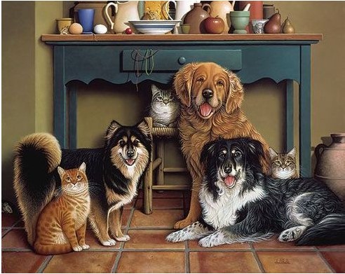 “I wanted to create a scene that was essentially impossible, where dogs and cats sit together and all of them are paying attention. The dogs are a Golden Retriever, a Lapland and a North American Shepherd – who happens to be my very own dog, Sasha. “This image also gave me an opportunity to fit many of the things I love into one image: dogs, cats, still-life subjects – like onions, pears, lemons, apples, bowls, cups, saucers and the antique table – and a play on words! After all, the pets are so intent on posing and smiling that they seem oblivious of the mice behind them . . . and what is happening to the real cheese!”