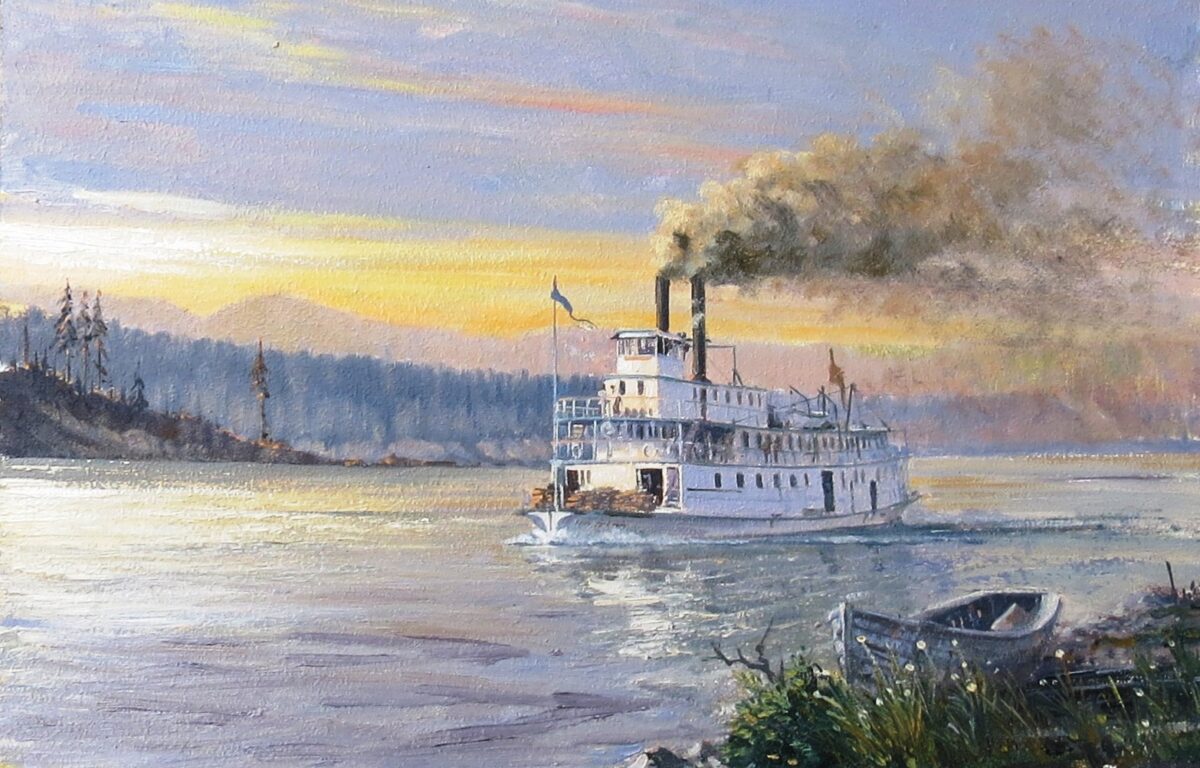 This well loved historic “D A Thomas” sternwheeler was a familiar site on the Peace River when that was one of the few forms of transportation in the area. She provided luxury, but necessary transport on the river until wrecked in 1929.