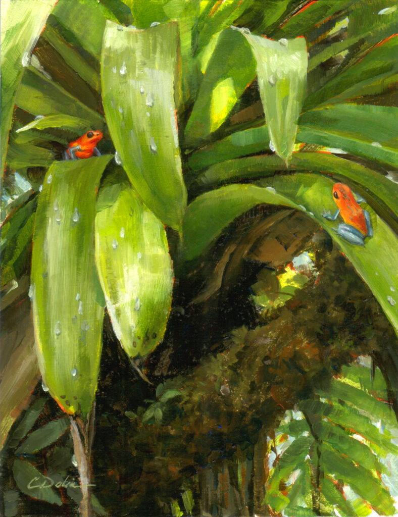 He’s hiked and camped in mountains and forests throughout the northwest U.S., Central America and East Africa. He knows the lakes and mountains as well as he knows the plains and deserts, not to mention almost all the creatures who live there, from the smallest bird to the largest elephant. And he will paint them on whatever size canvas suits them best. In addition to his peaceful views of animals in their natural habitats, he is also known for his paintings’ many different sizes and shapes—each chosen to best suit his perfectly balanced images of wildlife and wilderness. Rod Frederick has two adult children and is so excited that he has just become “Grandpa” for the first time.